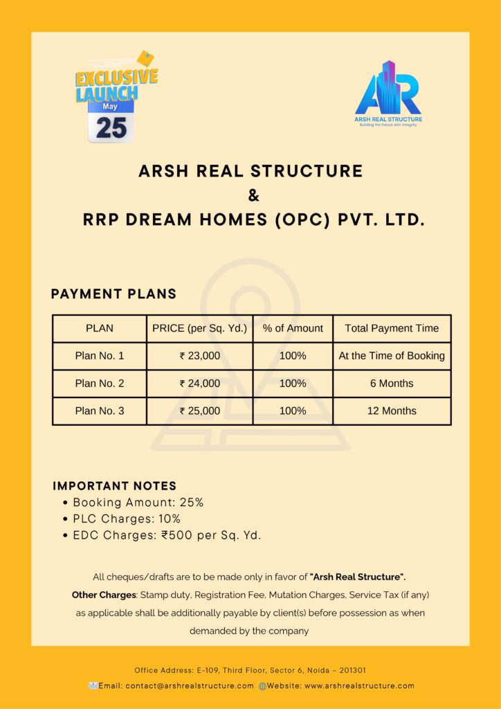 - Fully approved township with NOC in hand from DTCP (Department of Town and Country Planning), Uttar Pradesh